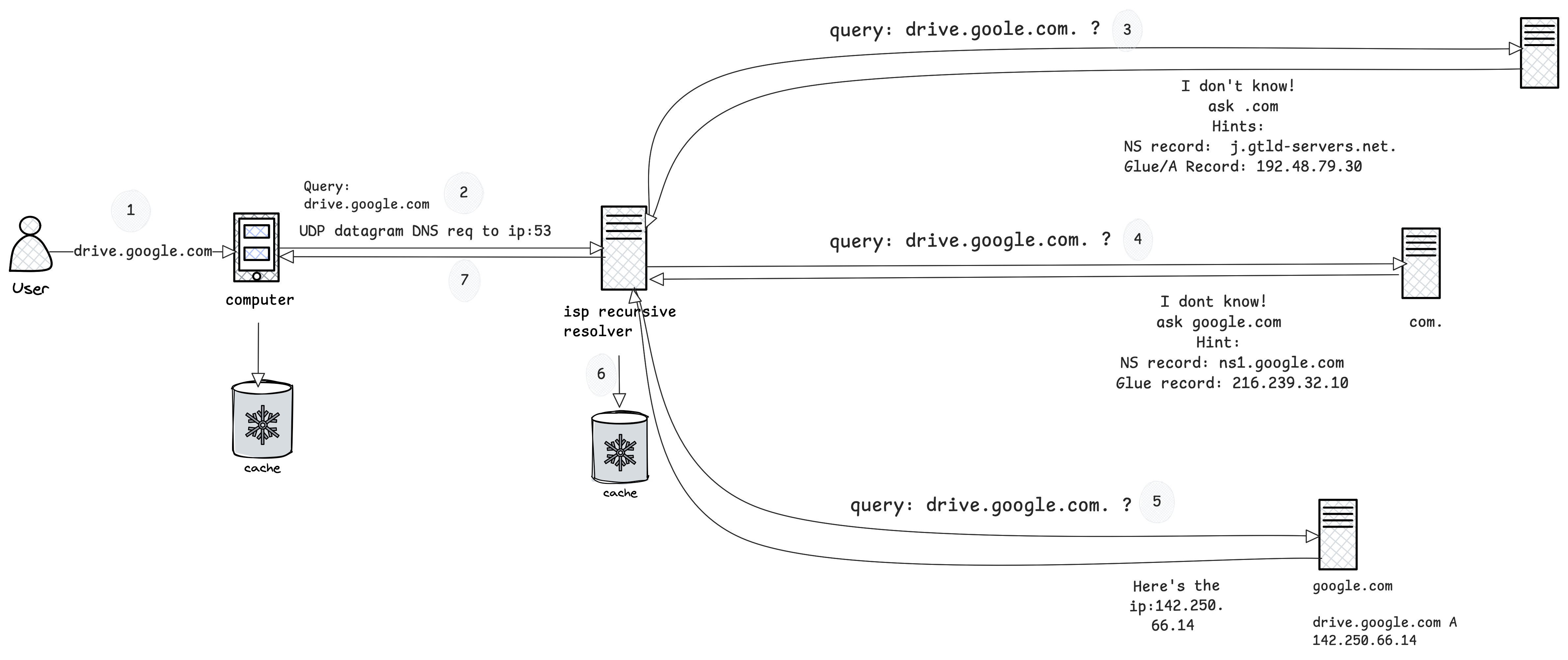 int getaddrinfo(const char *restrict node, const char *restrict service, const struct addrinfo *restrict hints, struct addrinfo **restrict res);Stub Resolver running in your computer acts upon it. It sends a UDP/TCP datagram request to the remote resolver with the RD bit set(Asking for recursion). It doesn’t send drive.google.com as a string, its a collection of length-prefixed labels to match the tree structure.